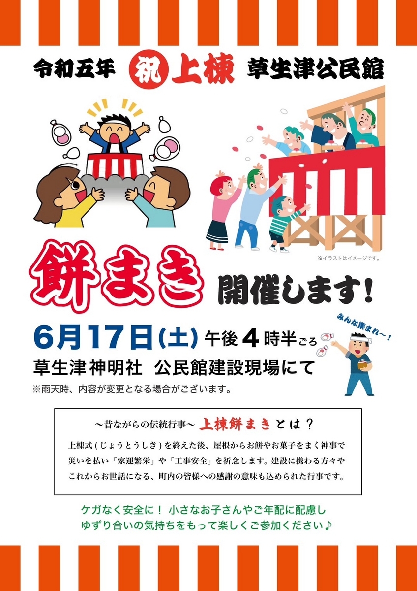 新しい公民館の上棟式を皆さんと一緒に楽しみたいと思います。ご参加をお待ちしております。